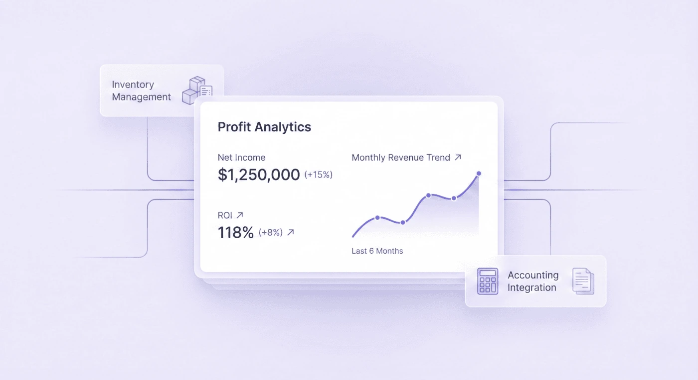 Monitor your P&L, cash flow, and profitability in real-time. Make informed strategic decisions with instant visibility into inventory levels, sales performance, and financial metrics. Reduce time spent on data gathering so you can focus on business growth and strategy.